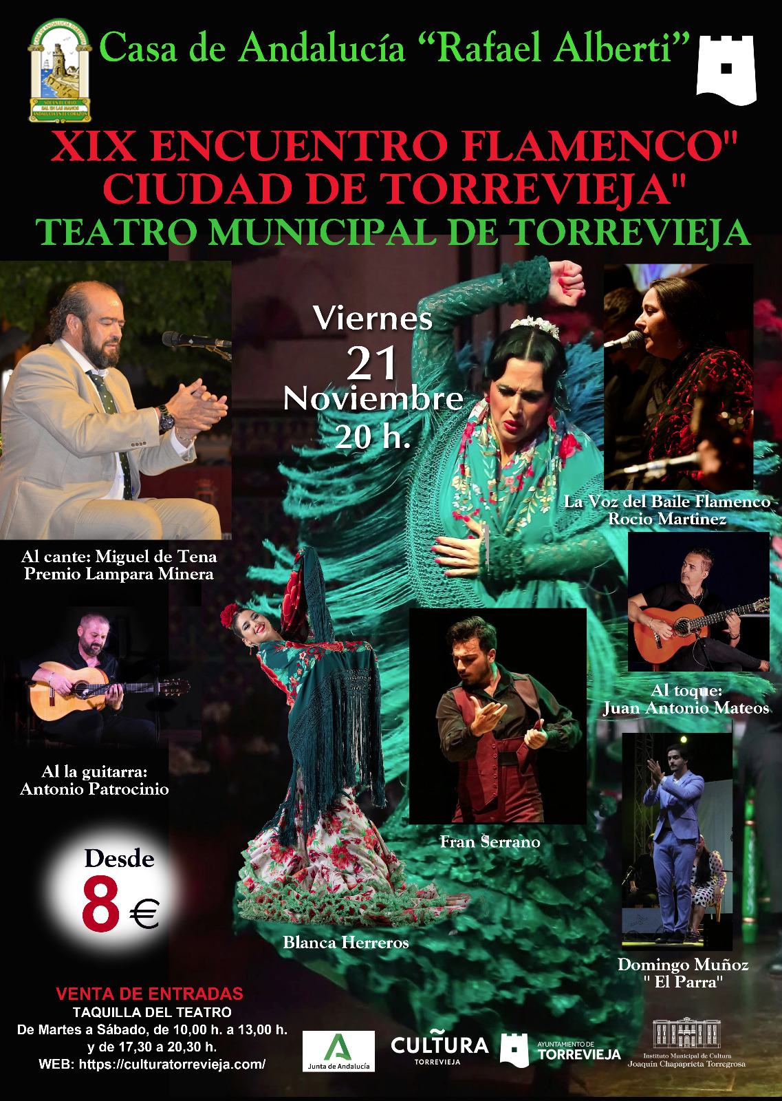 El próximo 21 de noviembre a las 20:00 horas en el Teatro Municipal, se celebrará la 19ª edición de este encuentro flamenco organizado por la Casa de Andalucía “Rafael Alberti” de Torrevieja, en donde se reunirán destacados artistas de todo el territorio nacional en una celebración que honra la rica tradición del flamenco.