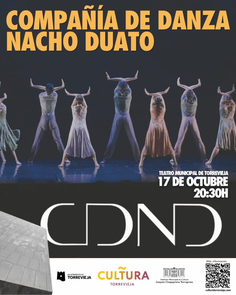 El viernes 17 de octubre a las 20:30 horas, el Teatro Municipal de Torrevieja acoge la presentación de la Compañía de Danza Nacho Duato, un grupo de bailarines que preserva y difunde el legado de uno de los coreógrafos españoles más influyentes a nivel internacional. Las entradas para el evento ya se encuentran totalmente agotadas.